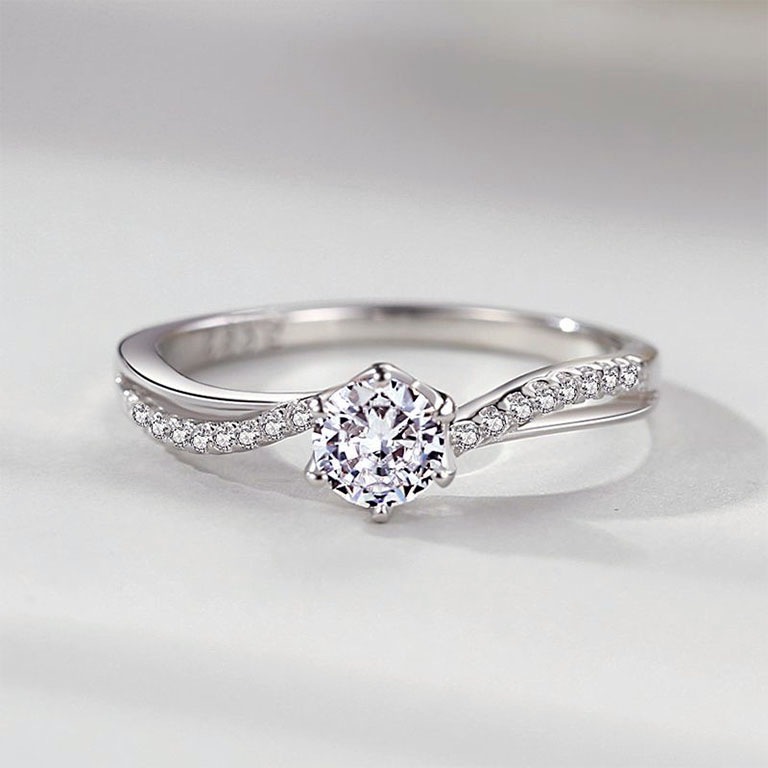中央宝石研究所鑑別証明書付き --雪花の咲く頃-- モアッサナイトリング 1ct モアサン石 指輪 サイズ調整可能 「大鑑定会」限定品