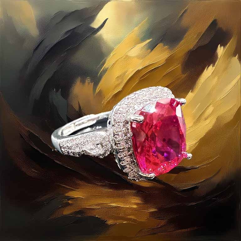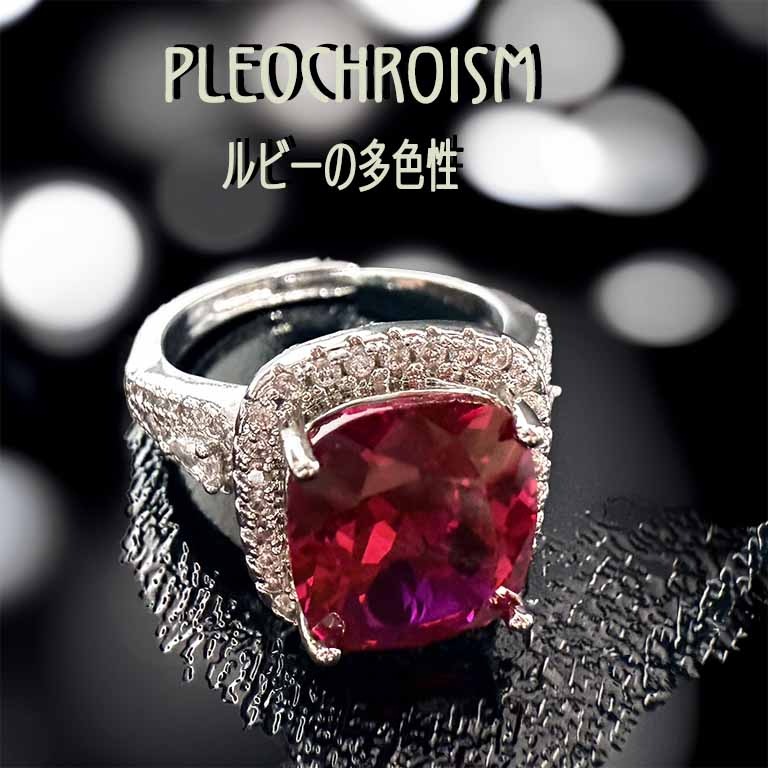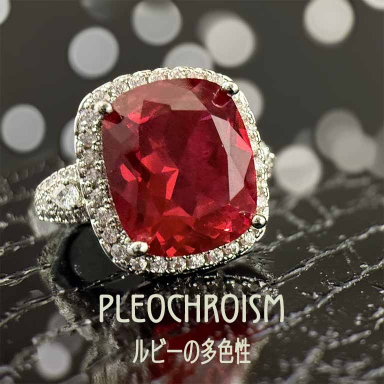 実験室で生まれた多色性ルビーは、角度ごとに桜色からワイン色まで遷ろう奇跡。天然石の二色性を分子設計で昇華させ、一つの宝石に『絵筆が描き分けた千の赤』を封じ込めました。単色に終わらない深みが、本物の芸術を証明する。