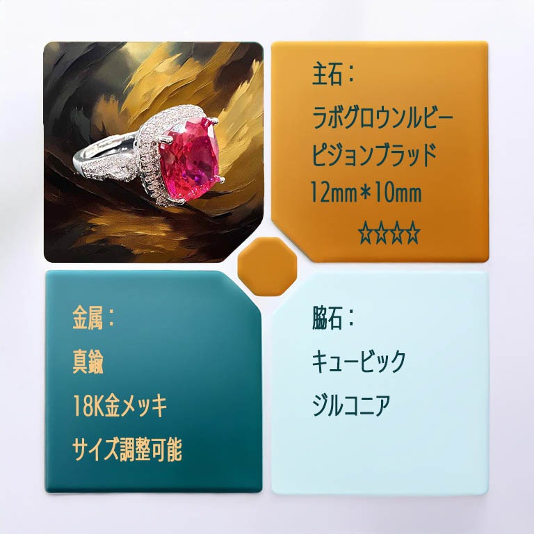 | 主石 | ラボグロウンルビー 12mmx 10mm ☆☆☆☆ |